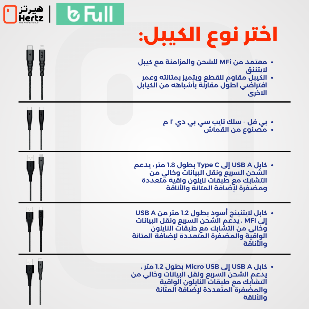 بكج (6 منتجات بي فل) بطارية متنقلة 10 ألف + راس شاحن جداري + راس شاحن سيارة + 2 كيبل شاحن