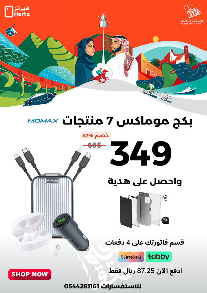 المواصفات :بكج (7 منتجات موماكس)سماعة بلوتوث ايربودز وكيبلبطارية متنقلة 10 ألف وكيبلراس شاحن سيارة2 كيبل شحن من اختيار العميل