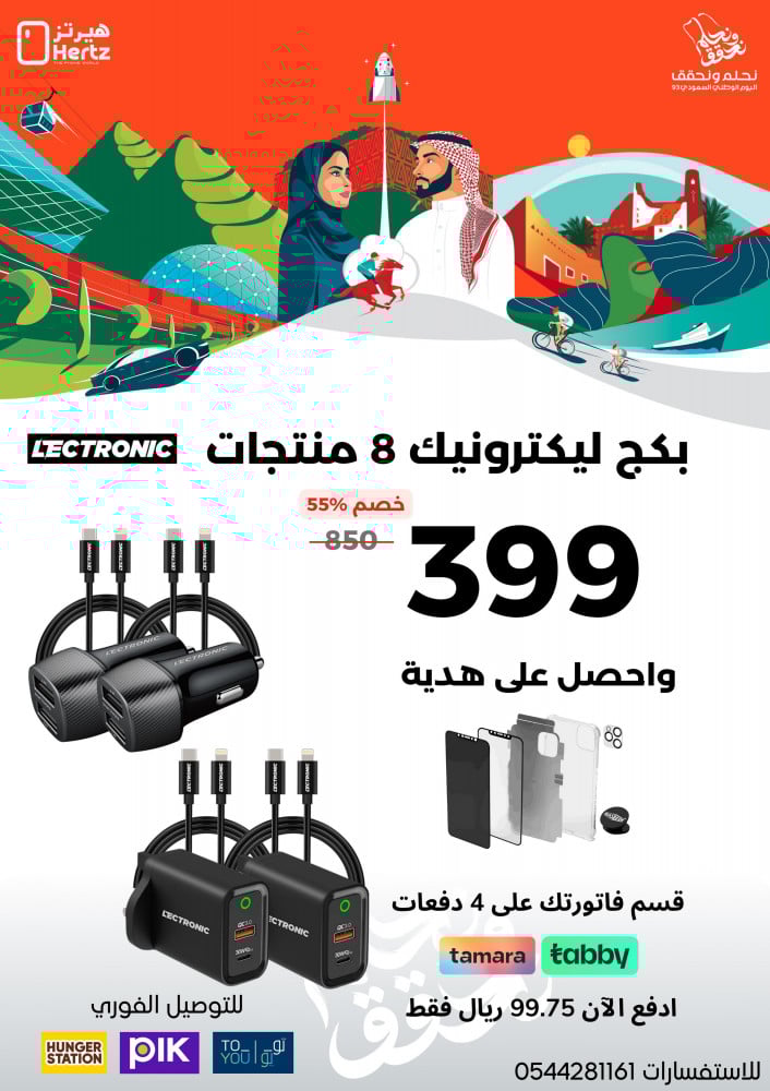 المواصفات :2 راس شاحن سيارة يدعم جميع الجوالات2 راس شاحن جداري يدعم جميع الجوالات4 كيابل شحن ( من اختيار العميل )